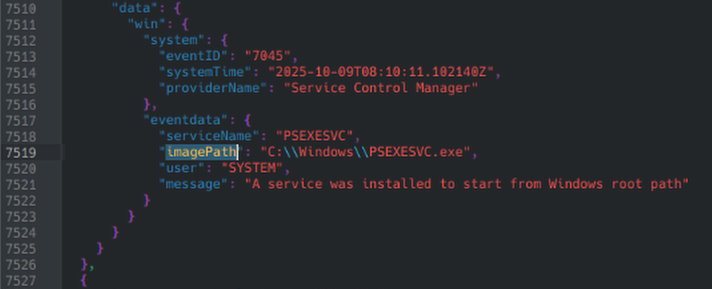 To start we know that we’re looking for persistence mechanisms, and it also tells us we’re looking for a log with an imagePath value, implying it is an executable being used. Just by searching for logs that are grouped with persistence we see a new service installed known as PSEXESVC.exe, which is a Microsoft executable designed for remote process execution, showing clear signs of a persistence tactic.
